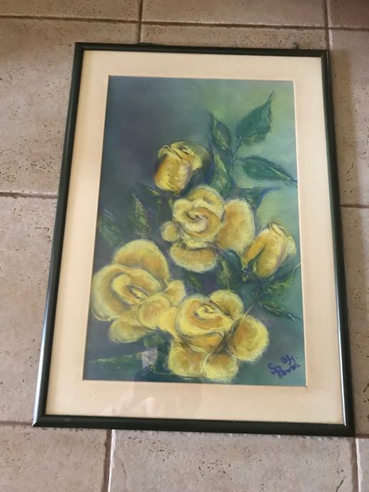 -Žute ruže , original , slikar amater , suhi pastel na papiru -PRODANO