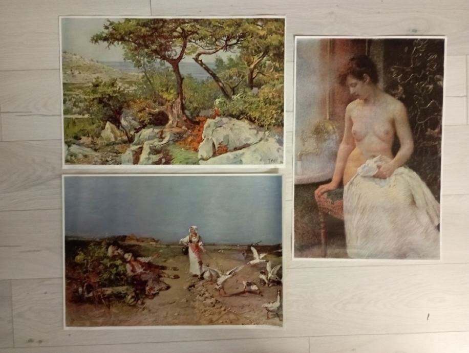 Vrhunske reprodukcije iz 70 -80.godina,(Vlaho Bukovac poluakt-U kupaonici,Krizman Tomislav-Masline,Mašć Nikola-Guščarica),dimenzija 60x40,svih 23 komada prodajem za 50 e.Pogldajte i ostale moje oglase, šaljem poštom,tekući