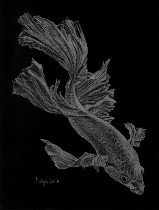 Veličina crnog papira: 30 x 39 cm, bijele bojice austrijske marke Cretacolor.