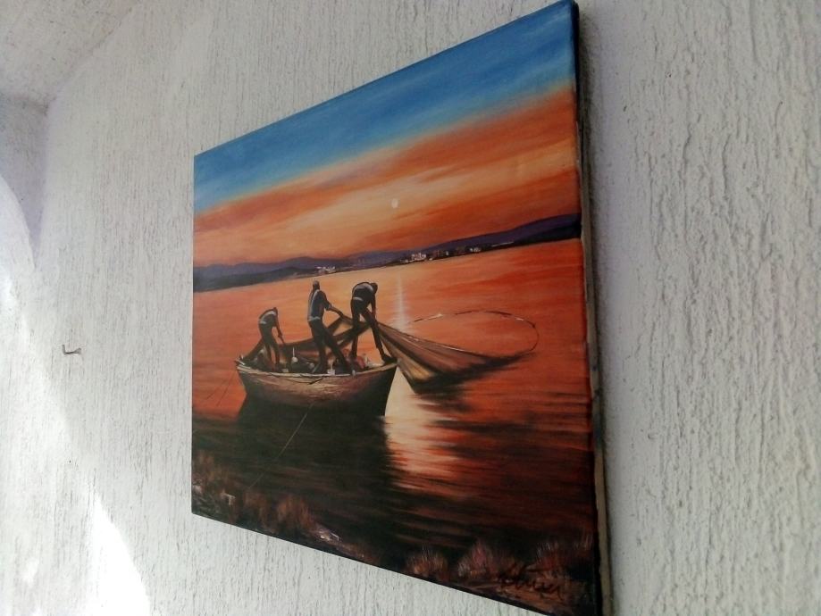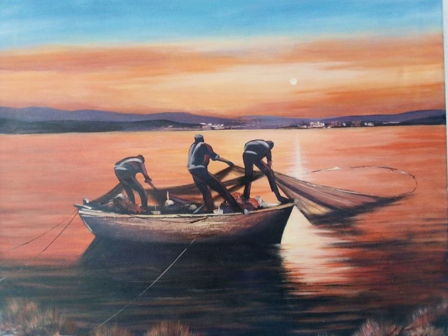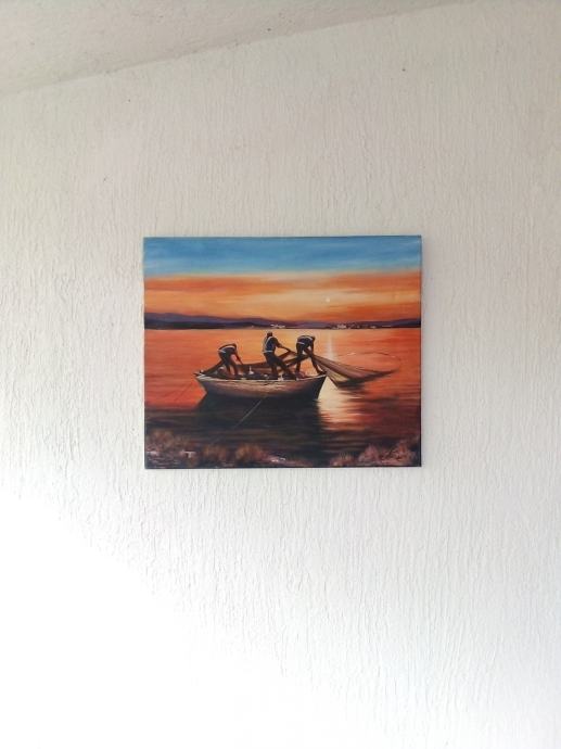 Slika ribara dok izvlače mrežu. Ulje na platnu.