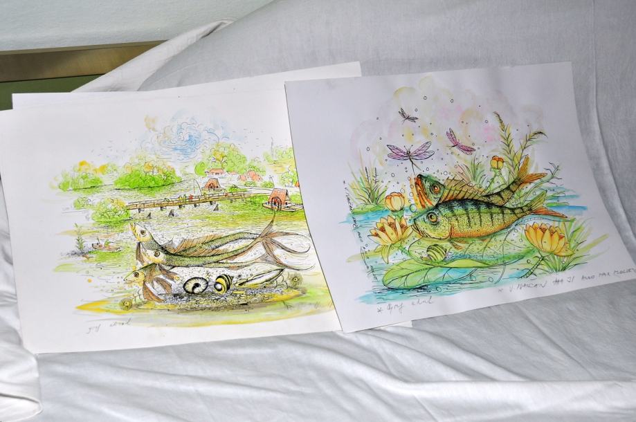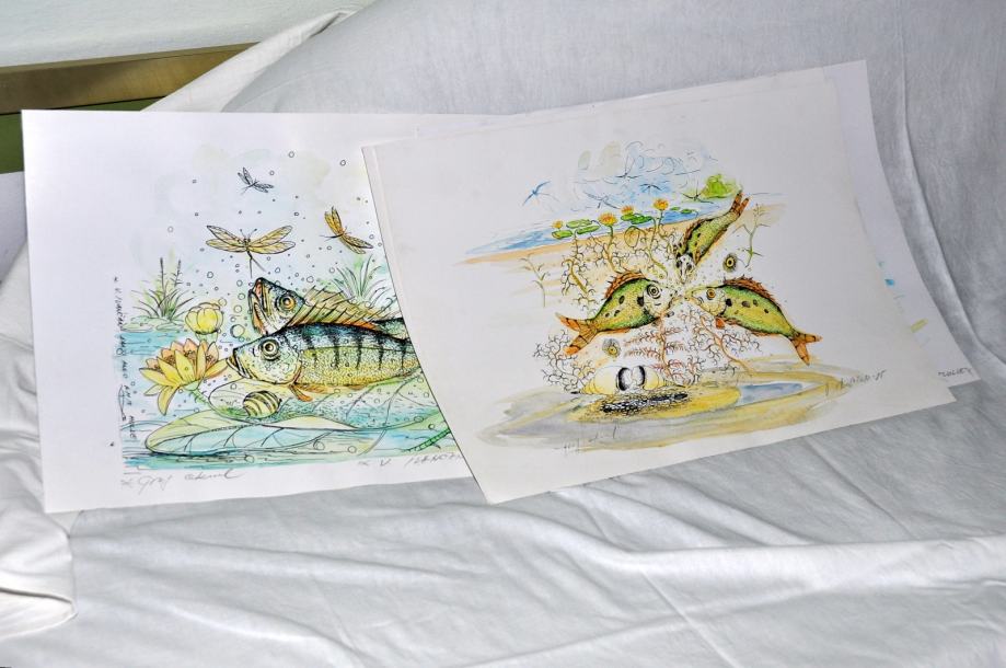 6 graf. listova (grafika-akvarel) V. Ivančana - Molvarskog, Van Gogha molvarskih blatnih rukavaca i samozatajnih ribokradica!