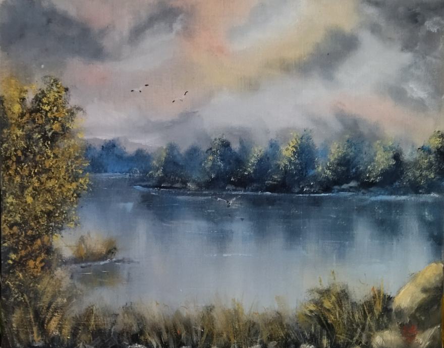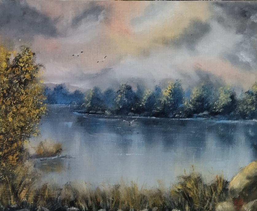 Prodajem sliku Na rijeci - ulje na platnu veličine 50,5 x 40,5 cm