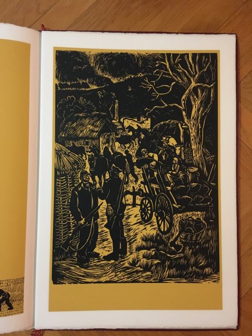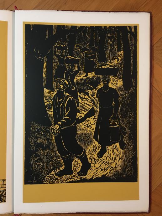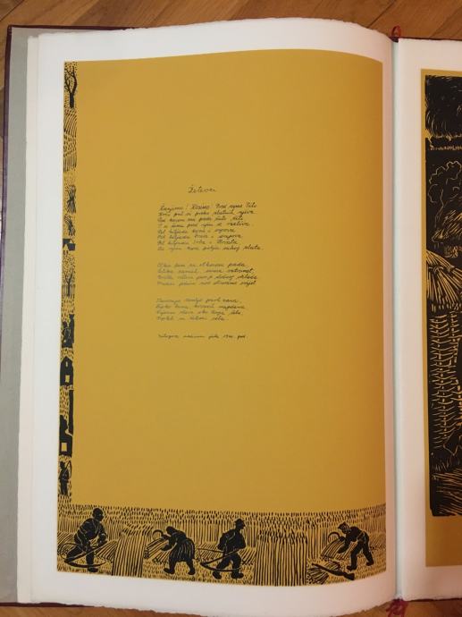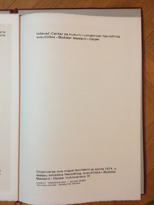 Franjo Mraz - mapa grafika Franje Mraza sa pjesmama Josipa Cazija. Naziv mape je "Pjesme iz slavonske žetve 1944". Numerirano (73.) i potpisano olovkom od strane oba autora. Zbirka pjesama je prvi put tiskana 1944.g., a ovo izdanje mape je tiskano 1974. (Mapa je tiskana u 200 primjeraka). Mapa sadrži 6 velikih grafika i pet pratećih pjesama (dimenzije cca 60x40cm). Stanje izvrsno.