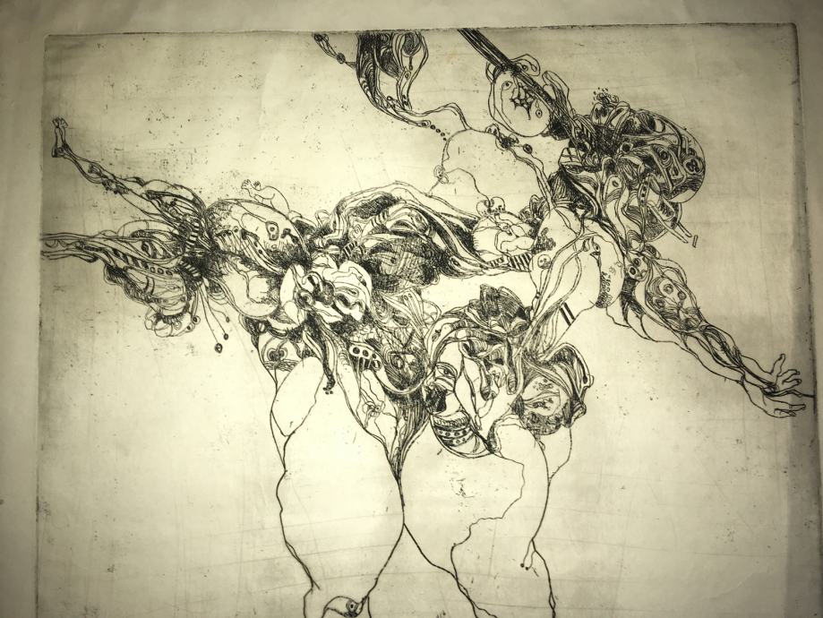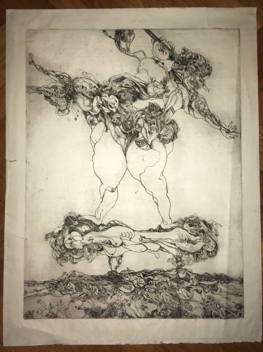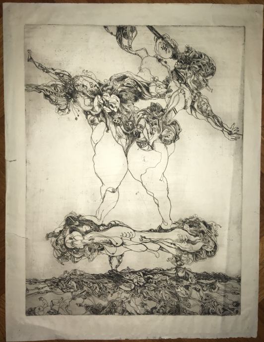 Na fotografijama je prikaz stranice kataloga izložbe iz 1974 s reproducirani grafikom. Katalog nije u prodaji.