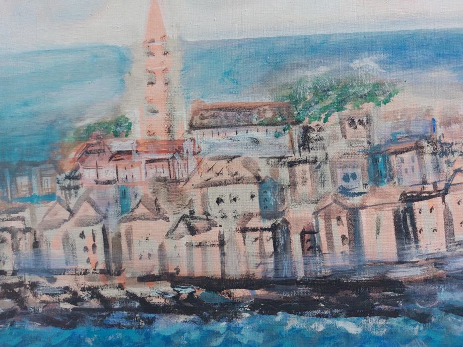 Ovaj akvarel na platnu je možda jedini njegov rad na platnu na velikom formatu. Rad je iz davne 1965 godine u izvornom galerijskom okviru. Slika je u izvrsnom stanju kao nova.