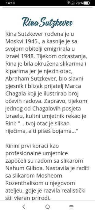 SLIKA OD RINA SUTZKEVER slikarice. Slika orginal sa pečatom i potpisom autora.Veličina slike sa okvirom 50x65. Šaljem poštom uz vašu poštarinu..