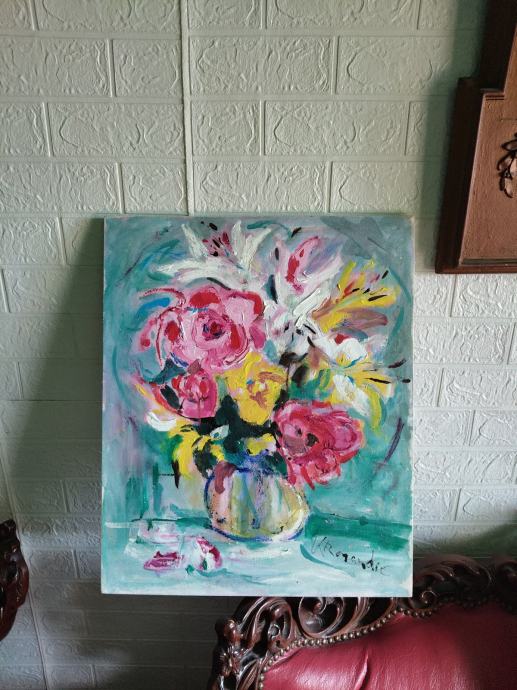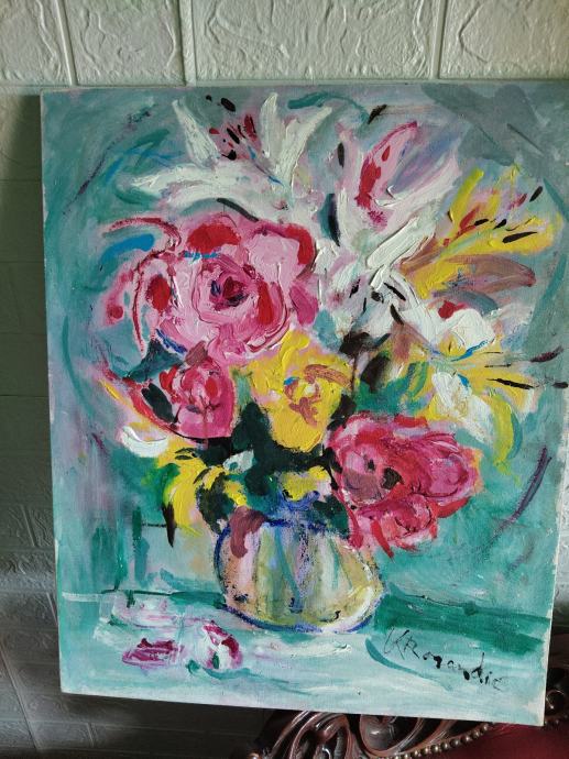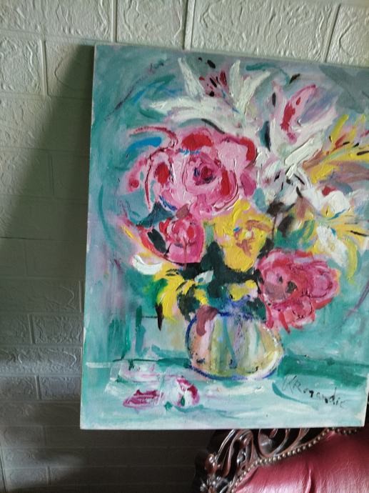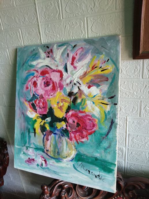 Prodajem sliku K Rosandica.. Lice u cvijecu.. 55x45...kombinacija ulja i akrila
