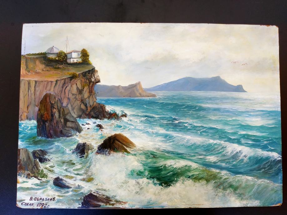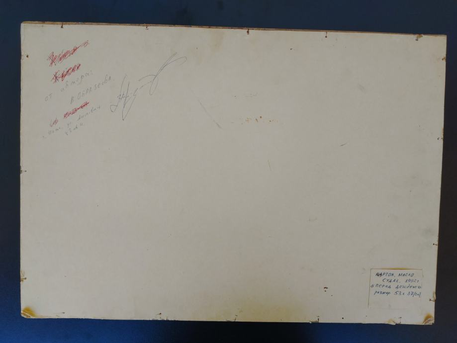 Ulje na kartonu, dimenzija 37x53 cm. Slika je bez okvira, na kutovima neznatno oštećena, ali kad se uokviri to se neće primjetiti.