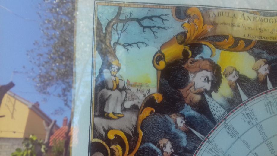 Prodaje se slika Ruža vjetrova, reprodukcija odnosno seriografija reprint najvjerovatnije autor Karuc iz Zadra. Slika je ostakljena, malo oštećen karton sa stražnje strane, pokriven samoljepivom trakom, te u desnom gornjem uglu na crvenoj površina mali tragovi najvjerojatnije vlage. Inače je slika u dobrom stanju. Dimenzije slike sa okvirom su: širina cca 52,5 centimetara i visina cca 49 centimetara. Cijena slike je 100 eura. Moguće osobno preuzimanje u Zadru. Kontakt broj mobitela 091 131 10 36.