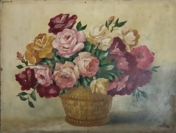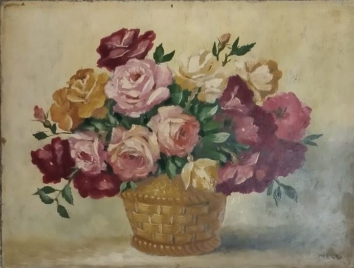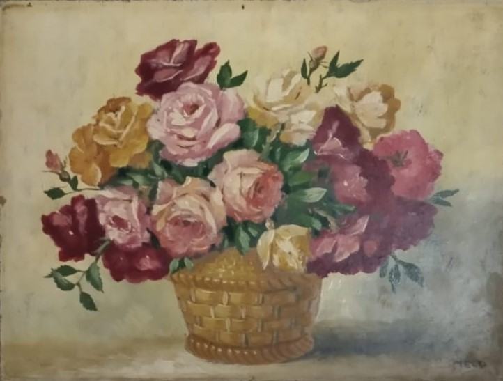 ruže u košari - ulje na lesonitu