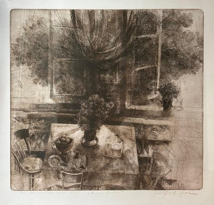 Safet Zec "Otvoreni prozor" suha igla / bakropis 70x70cm 1983 godina;