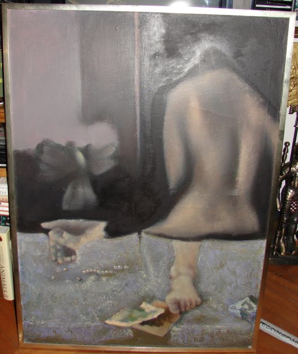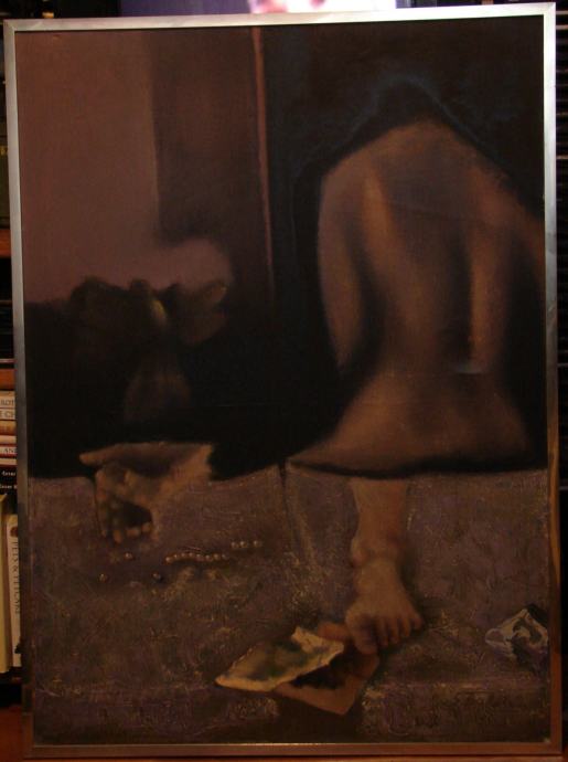 Sanja Balen – Ulje na platnu, 100x80cm, uokvireno. Sanja Balen rođena je 14.10.1963 godine u Zagrebu. 1982. godine zavrsila je Školu primijenjene umjetnosti u Zagrebu, slikarski odjel. 1986. godine diplomirala je slikarstvo na Akademiji likovnih umjetnosti u Zagrebu, u klasi prof. V. Jordana. Godine 1988. bila je gost – student na Akademie der bildende Kunste – Karlsruhe, Njemačka, kod prof. Kuchenmeistera. Od 1994. do 1998. godine predavala je slikarstvo u Školi primijenjene umjetnosti i dizajna u Zagrebu. Od 1998. do 2008. godine živjela je i radila kao slobodni umjetnik u Amsterdamu, Nizozemska. Od 2008. ponovno radi u Školi primijenjene umjetnosti i dizajna kao profesor crtanja i slikanja i pisma. Cijelim opusom slikarice provlači se preokupacija ženskom figurom, mrtvom prirodom i pejzažom, sa lajtmotivima poput, bisernih ogrlica, porculanskog vrča, cvijeća i starih fotografija. Djela uglavnom odišu sjetnim prikazom svijeta uspomena, a rađena su u tehnici ulja na platnu i pastela. Izlagala je u New Yorku, Amsterdamu i u Njemačkoj. Članica je HDLU-a.