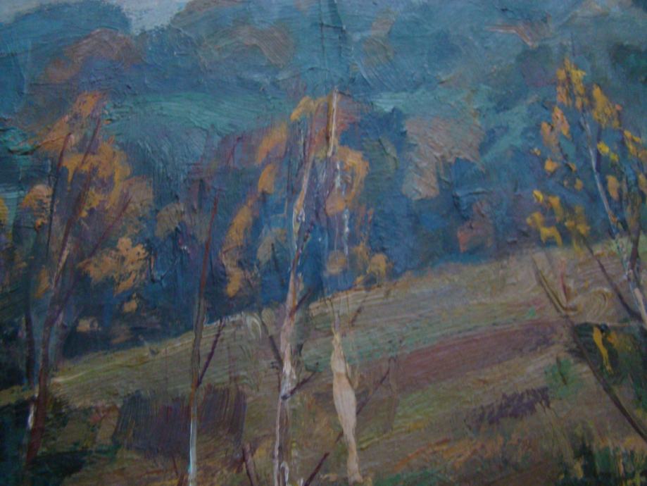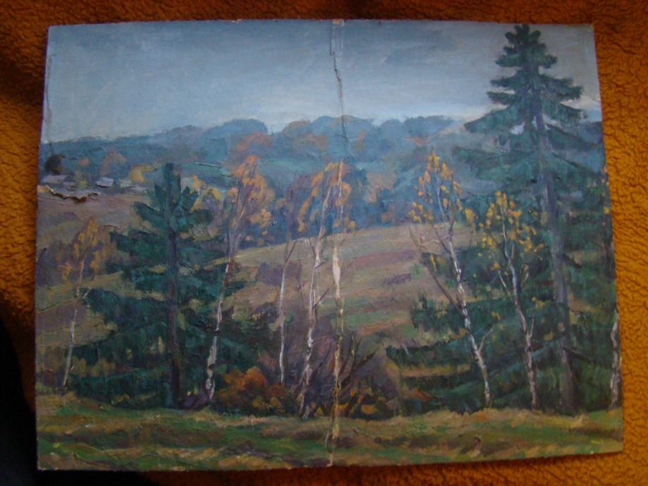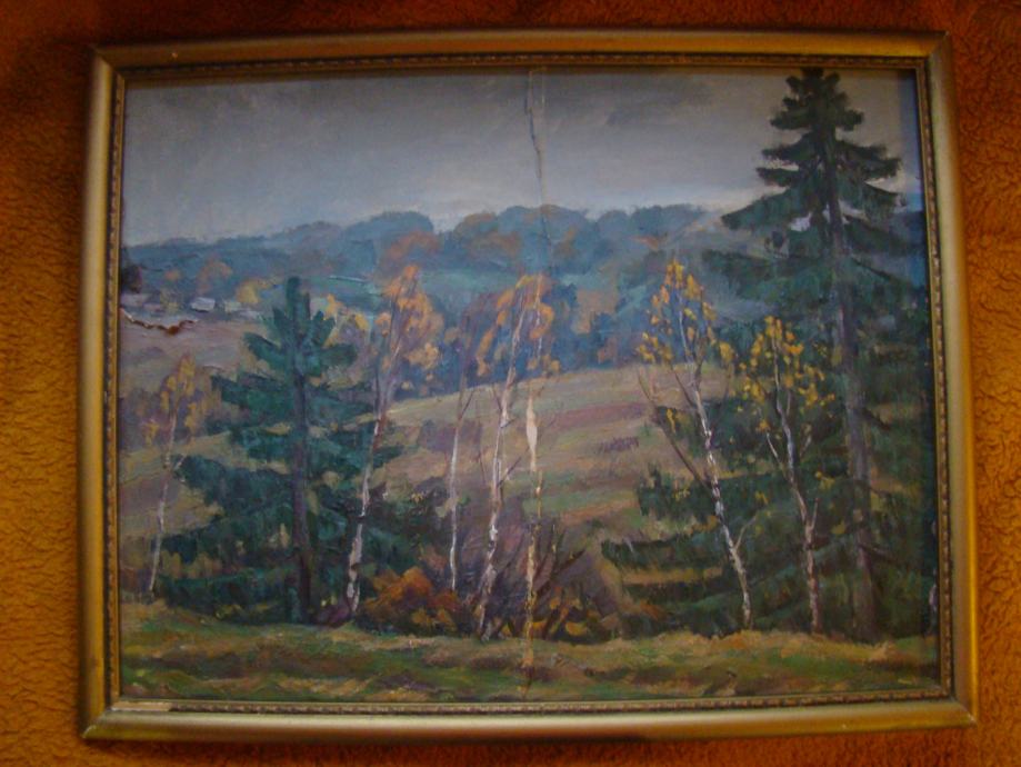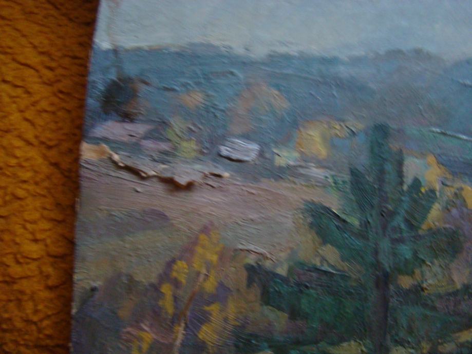 53 x 42 cm ukupno, slika je presavijena te je boja ispucala. Sve vidljivo na slikama.