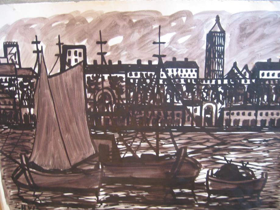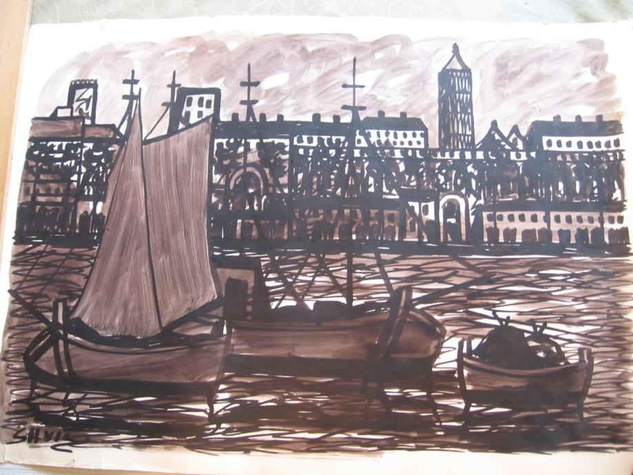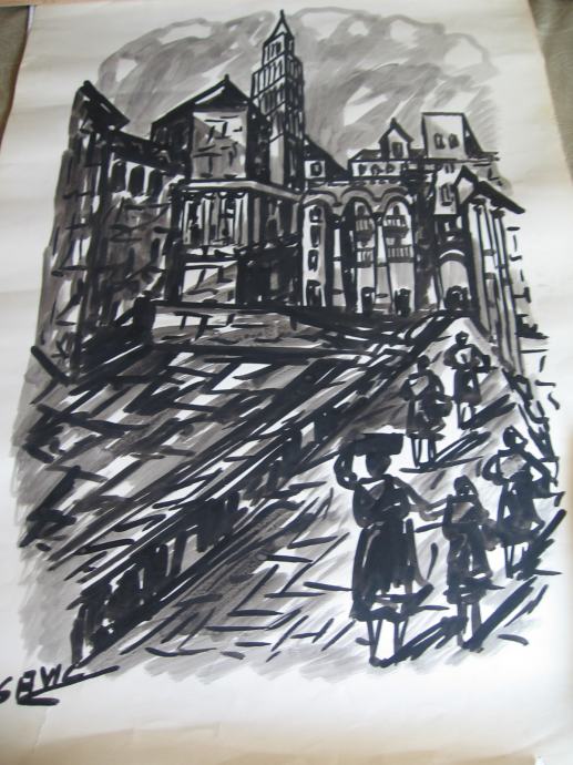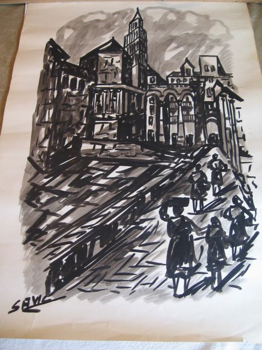 Dvije slike od splitskog akademskog slikara Josipa Savića. Tehnika je lavirani tuš. Slike su nabavljene direktno od slikara, iz 70 tih godina prošlog stoljeća.