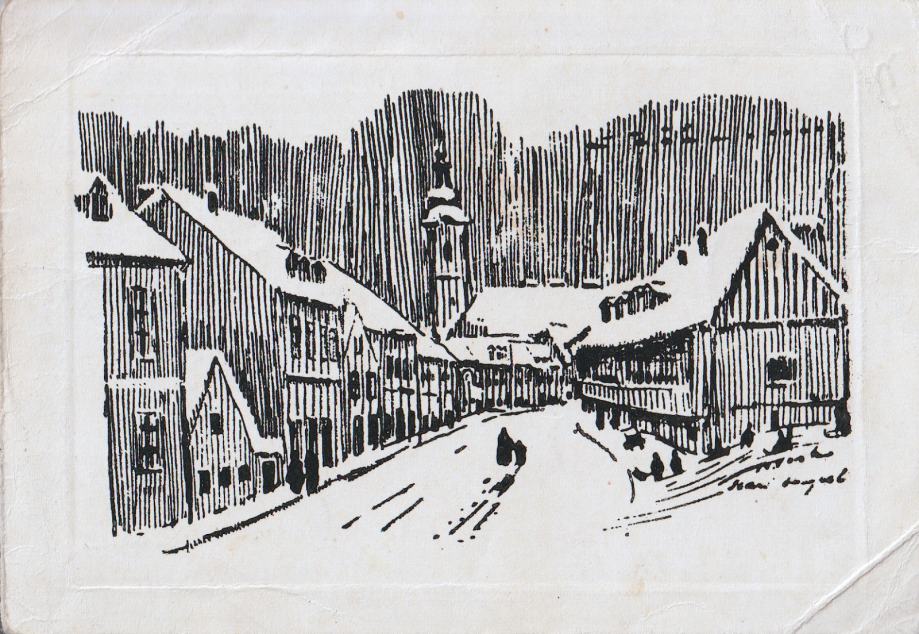 Motiv: selo s crkvom, ulična perspektiva