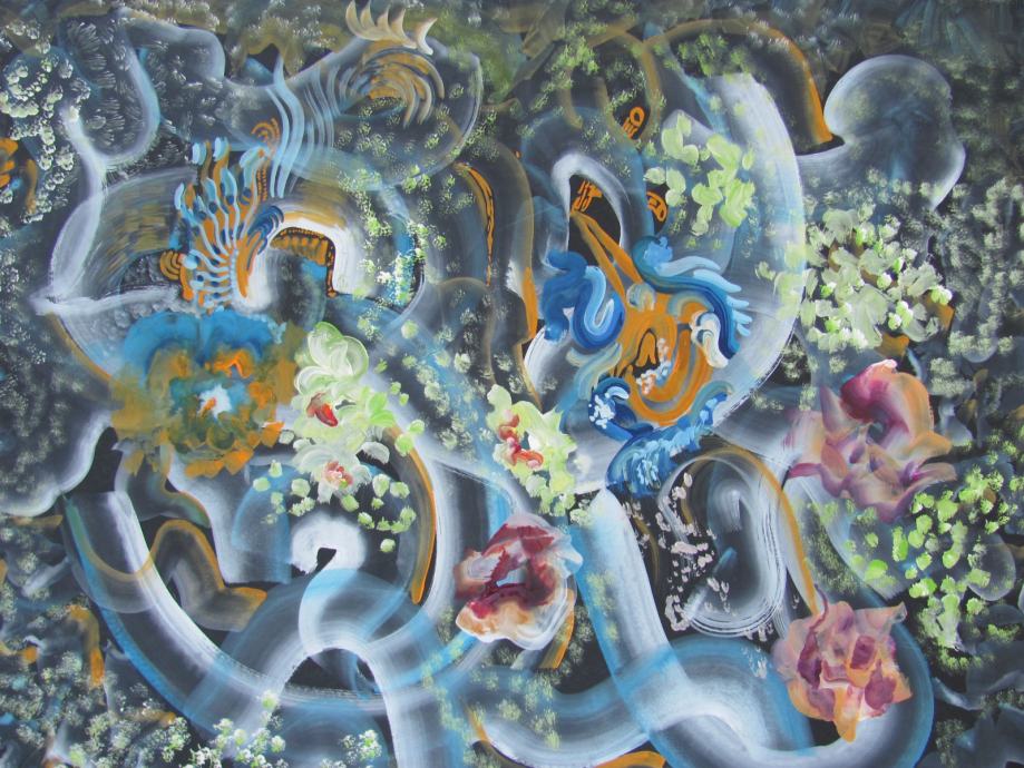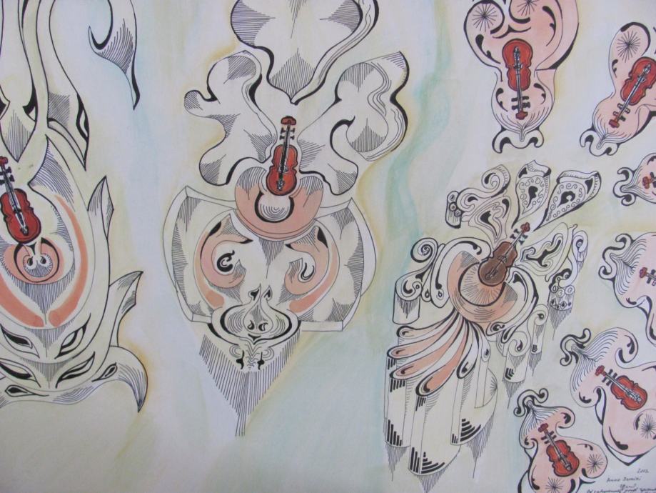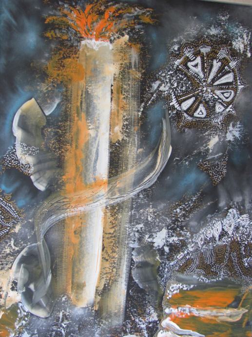Originalne umjetničke slike, apstraktne i semiapstraktne, na paspartu kartonu: akril, markeri, kreda.