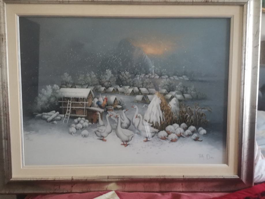 Ulje na staklu: Guske u snjegu veci format, vrhunski opremljena, upit na broj 0921486666
