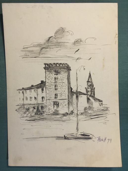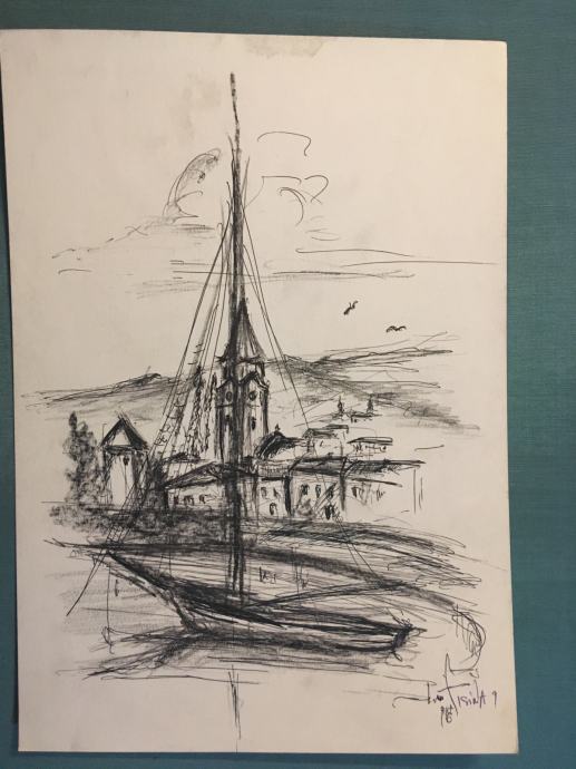 Crteži slikara Sergia Tišine sa zagrebačkim i dalmatinskim / morskim motivima. Uz svaki kupljeni crtež poklanjam olovkom ili pastelom dorađenu grafiku (prema vašem odabiru) istog autora. Grafike su rađene prema ovim ponuđenim ali i nekim drugim crtežima. Dimenzije crteža su cca 30x22cm. Pojedinačna cijena crteža je 150kn.