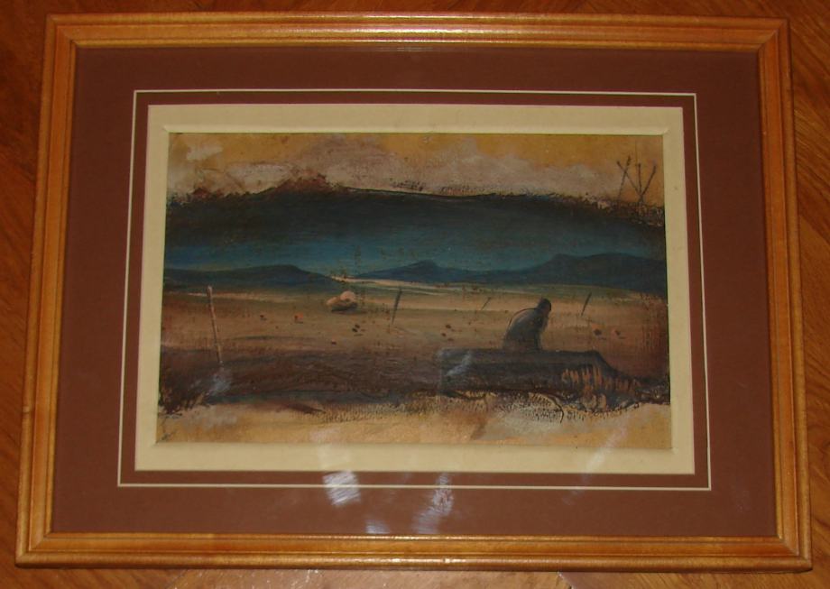 Siniša Stamenković – Izvrsno ulje na platnu (kaširano na karton) iz 1982., dimenzije sa paspartuom 44x33 (sama slika 31x20). Sudac, političar, bivši predsjednik općine Gadžin Han, narodni poslanik, pjesnik, no ponajviše slikar, ovaj niški umjetnik (rođen 1945.g.) je do sada mnoštvo puta samostalno izlagao, sudjelovao je i na kolektivnim izložbama, a dobitnik je i mnogobrojinih nagrada i priznanja. Za svoj umjetnički opus, Siniša Stamenković je do sada dobio medalju grada Bolonje iz Italije, nagradu “Zlatni kist” koji je dobio u Zagrebu, plakete sa likom Koste Abrašević u Valjevu i dvije zlatne značke Kulturno prosvetne zajednice Srbije. Likovni kritičar Đorđe Kadijević, na otvaranju zajedničke izložbe Milića od Mačve i Siniše Stamenkovića, u Gadžinom Hanu 1994. godine je rekao: „Stamenković je slikar fantastičnog prizora sa imaginacijom urbanog čovjeka sa znacima frustracije i duboke uznemirenosti”. A veliki slikar Milić od Mačve u svojoj prvoj povjesnici piše: „Siniša Stamenković slika lazurno i nadrealno u kompozicijama sa portretima suvremenika, nešto izmedju Dalijeve i moje koncepcije sa napregnutim stanjima koja se ne daju lako objasniti”. Na grupnoj izložbi u Zagrebu zajednička ocjena povjesničara umjetnosti i profesora Franje Mrzljaka i likovnog kritičara Elene Cvetkove je: „Siniša Stamenković tipičan je predstavnik srpskog nadrealizma i to u najboljem smislu riječi".