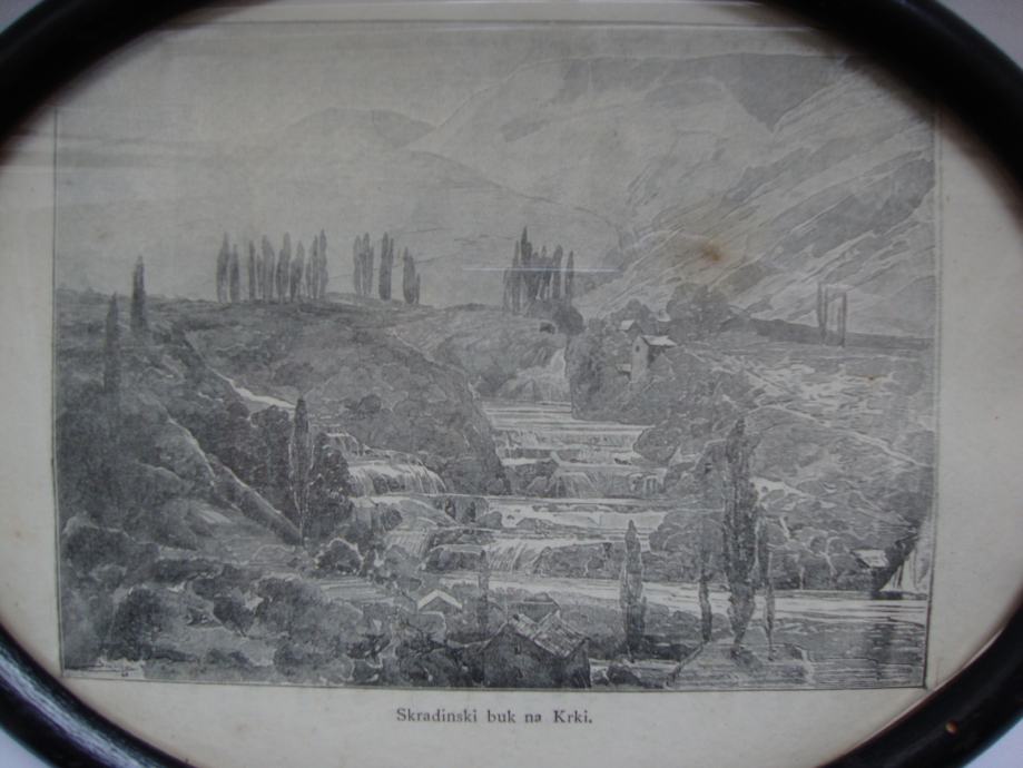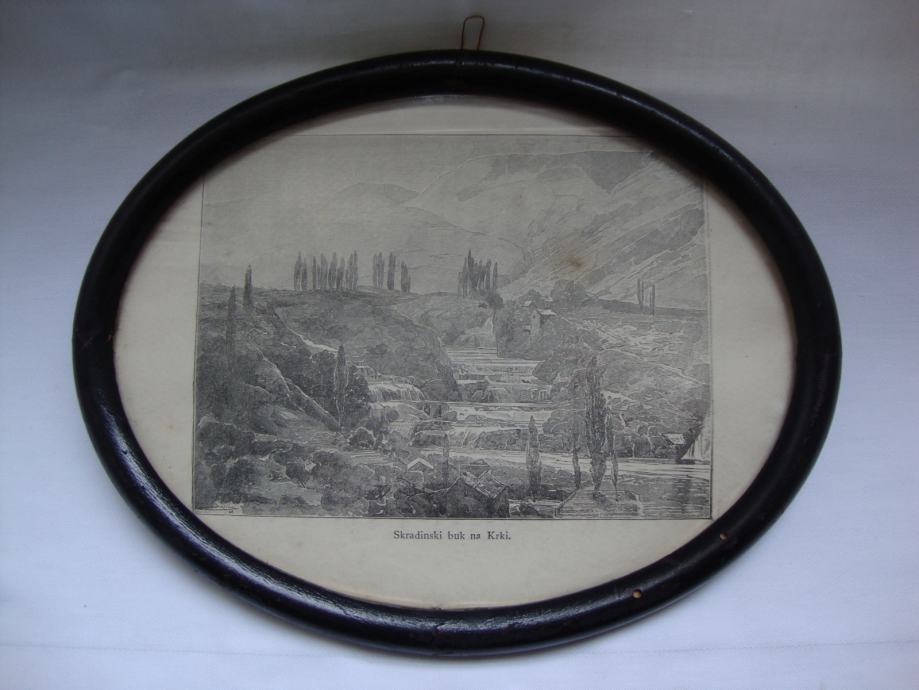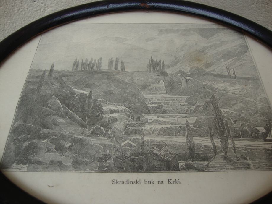 Slika preko 100 godina starosti"Skradinski buk na Krki " - bakrotisak -grafika u odličnom sačuvanom stanju sve autentično iz vremena