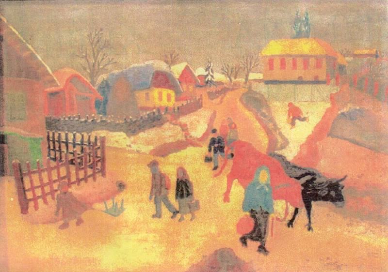 Prisutni su svi bitni elementi stila, izvedenog iz poetike naive, struktura pojednostavljenog i ekpresionistički deformisanog crteža,svedeni bojni odnosi,građenje prostora te sklonost detaljima i motivima sa sela, tipični za Stolnikovo stvaralaštvo.