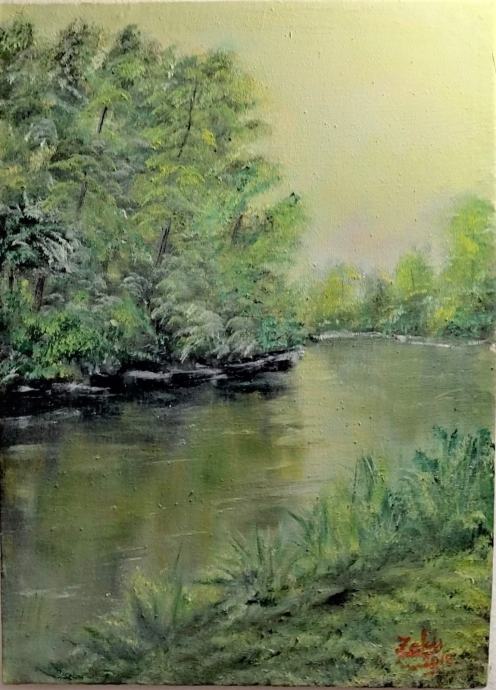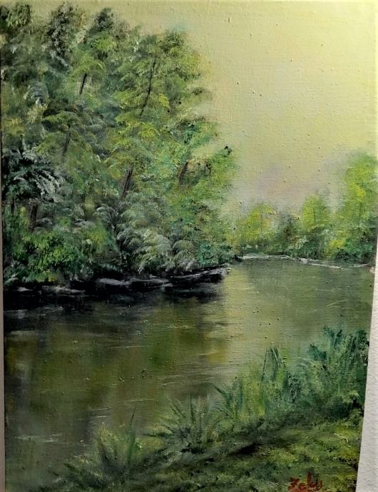 Prodajem sliku Slavonski pejzaž - Ulje na platnu veličine 28 x 38 cm