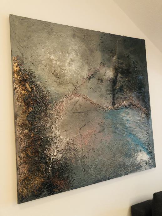 Robusna površina, slikanje akrilnih slika u nekoliko slojeva boje, što daje reljefnu teksturu. Bezvremenski jedinstveni komad.
