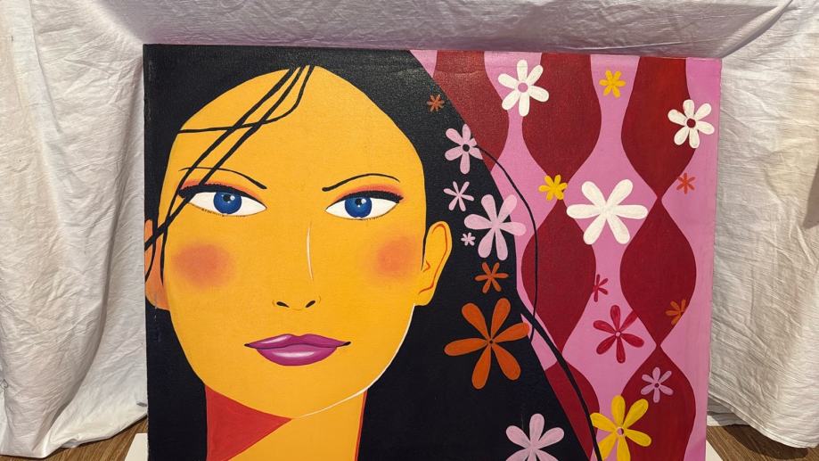 Slika akvarel djevojka i proljeće, original, 90*70cm