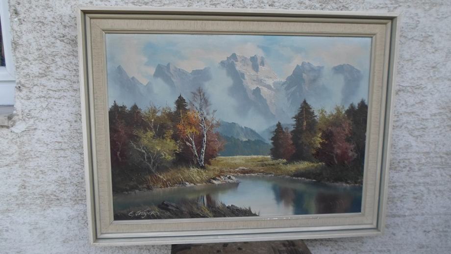 Prodajem umjetničku sliku u ulju "Alpski pejzaž"70X50 cm. slikara E.Gregera.