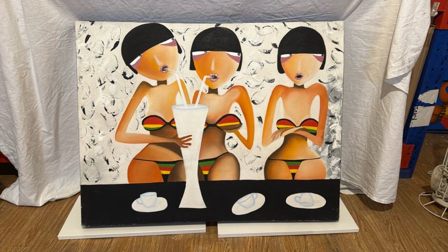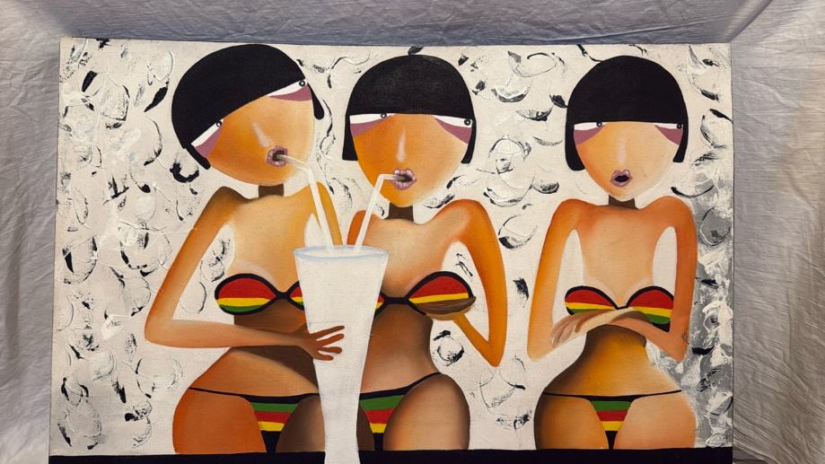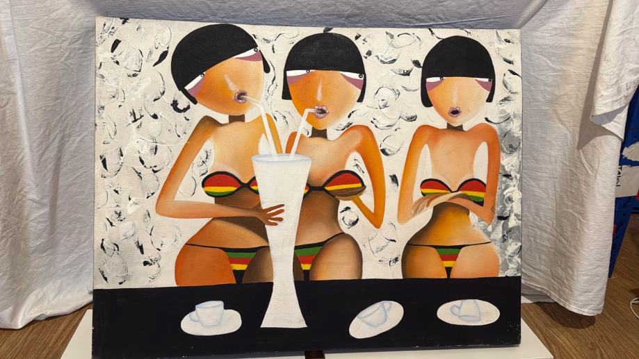 Slika beach bar stilizirana, akvarel, original, 90*60cm
