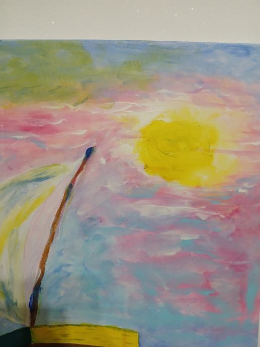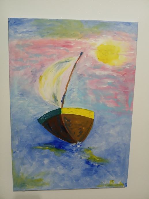 Slika čamac u moru, akril na platnu, 50x70cm, autor Ivan Vidović
