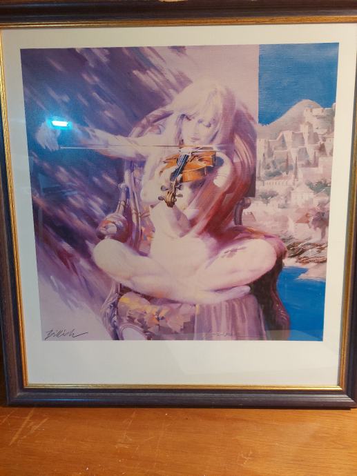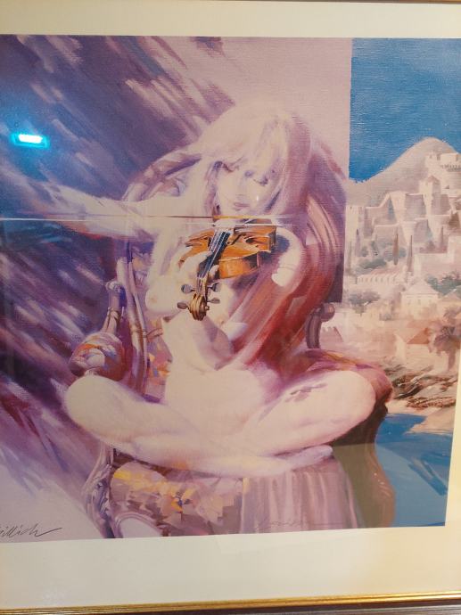 Prodajem sliku Charles Billicha slika je na papiru vel.72/68 .Slika je uokvirena dim.slike sa okvirom 81/76 cm.Naziv slike je Larisa violinistica Larisa.