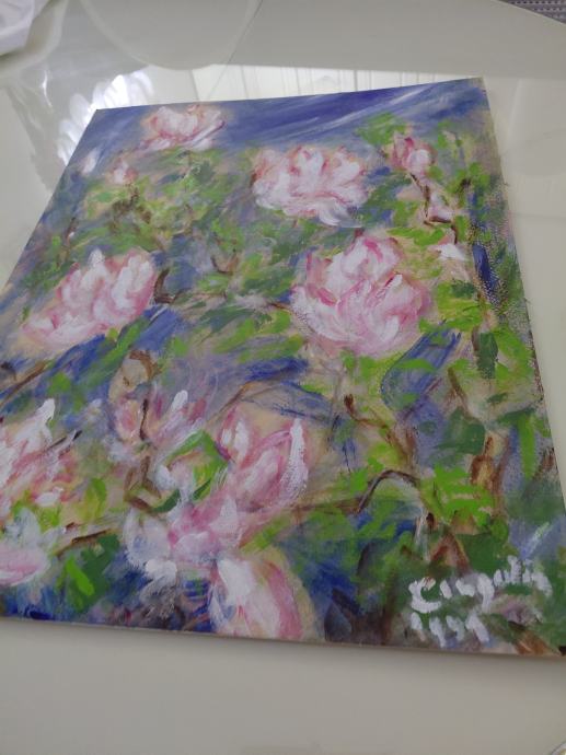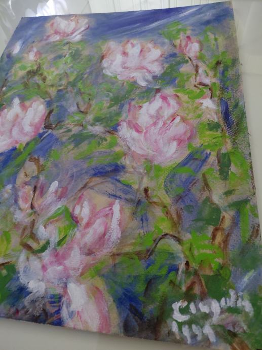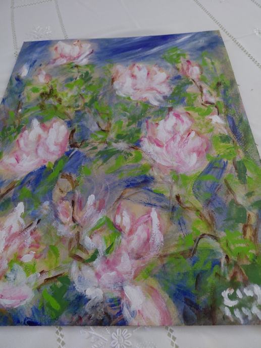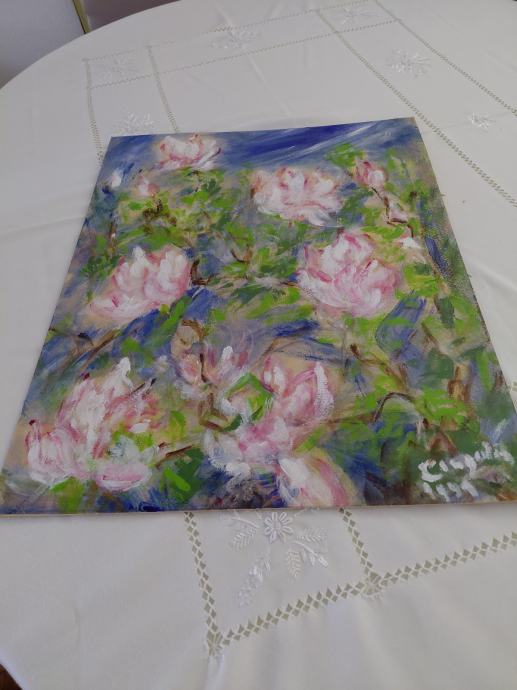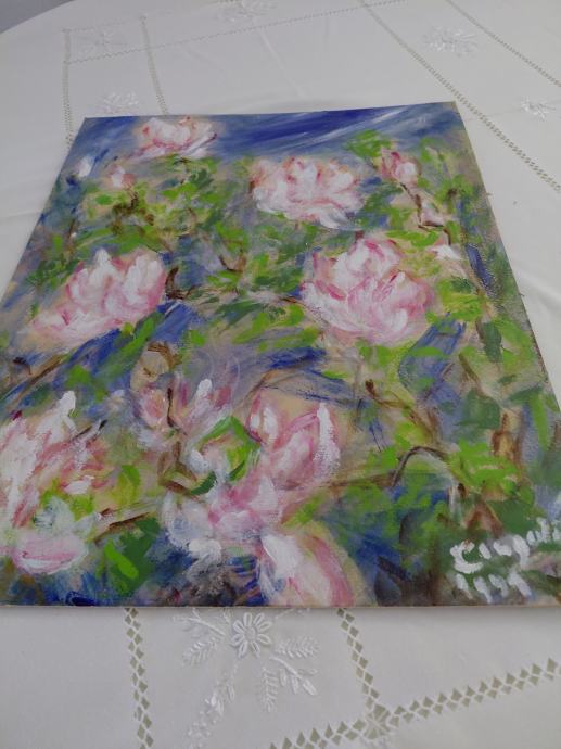 Slika nase cijenjene umjetnice iz 1991 god bez okvira vel,64x50 prekrasne ruze potpisana