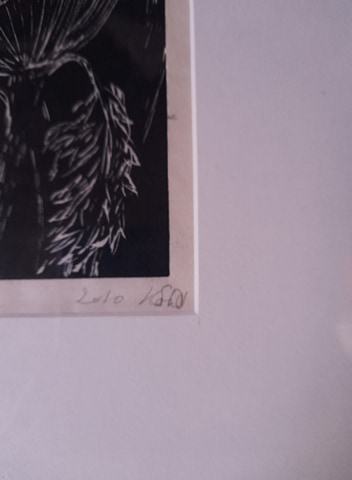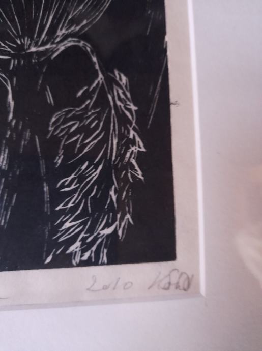 crni tuš, 2010, ima potpis umjetnika, dimenzije s okvirom 44x33,8, dimenzije slike 22x17, vidi slike