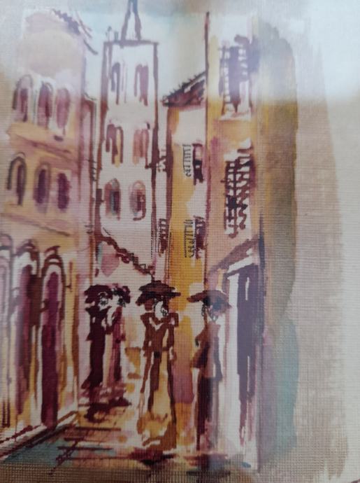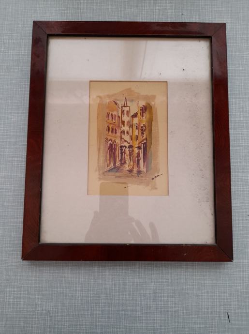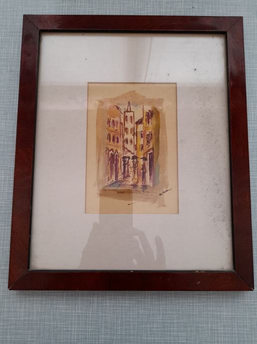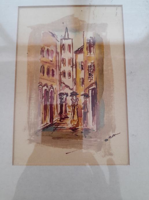 tehnika tuš, motiv dame na ulici, dimenzije slike 15,5x10,5, dimenzije okvira 26,5x37,5, vidi slike