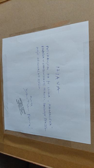 Slika je rađena u kombiniranoj tehnici 50×35 te je vrhunski opremljena. Oprema je nova i bez ostećenja. Uz nju dobivate orginalni certifikat izdan, potpisan i pečatiran od strane samog autora. Takav certifikat daje vam 100% sigurnost da je slika autentična.