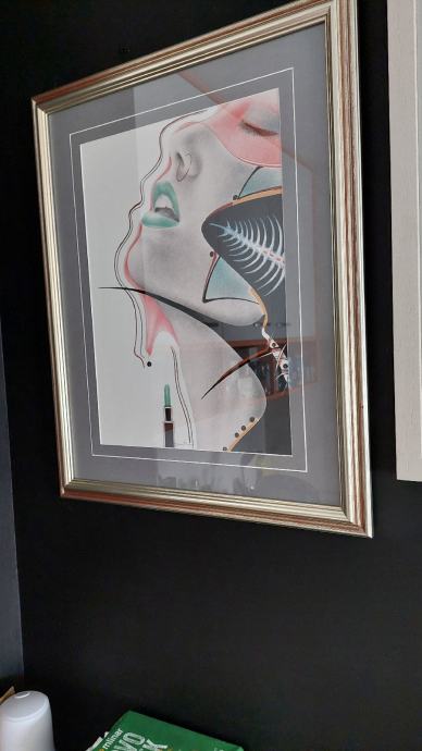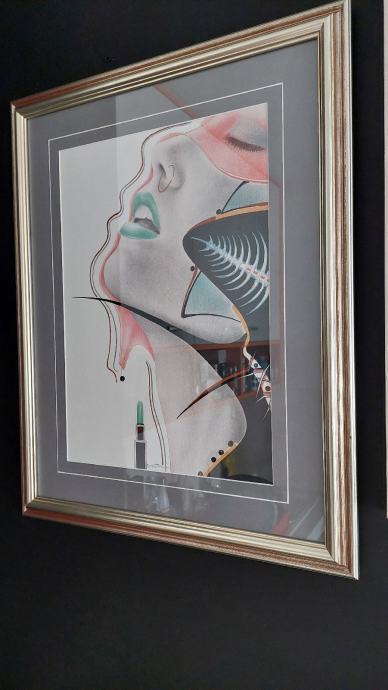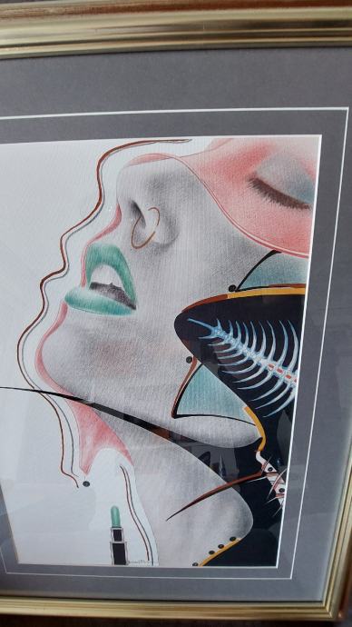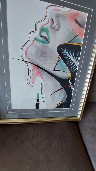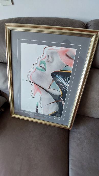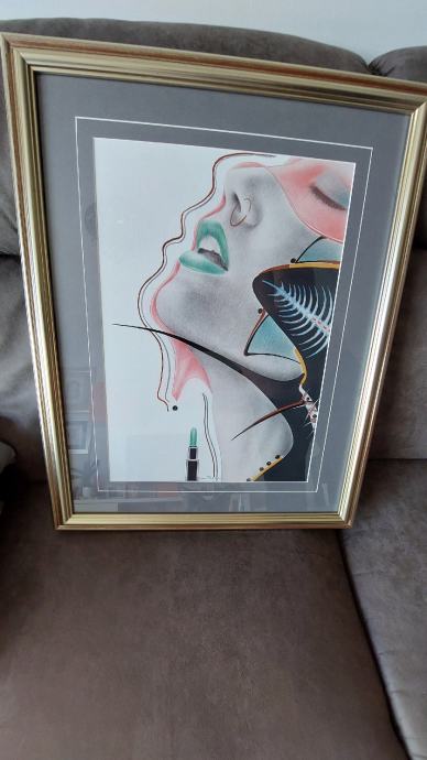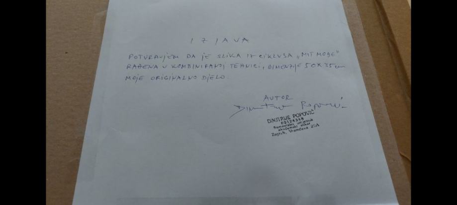 Slika Dimitrija Popovića "Mit Mode", rađena je u kombiniranoj tehnici. Sama slika je domenzija 50×35cm a sa bogatim okvirom i paspartuom je cca 70×55cm. Oprema je potpuno nova bez oštećenja. Uz sliku dobivate vlastoručno ispisani i potpisani certifikat s pečatom samoga autora.