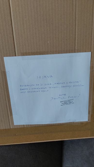 Slika je rađena u kombiniranoj tehnici dim. 50×35 te je vrhunski opremljena. Oprema je nova, bez oštećenja. Uz sliku dobivate orginalni certifikat izdani od samog autora te je vlastoručno potpisan i pečatiran.