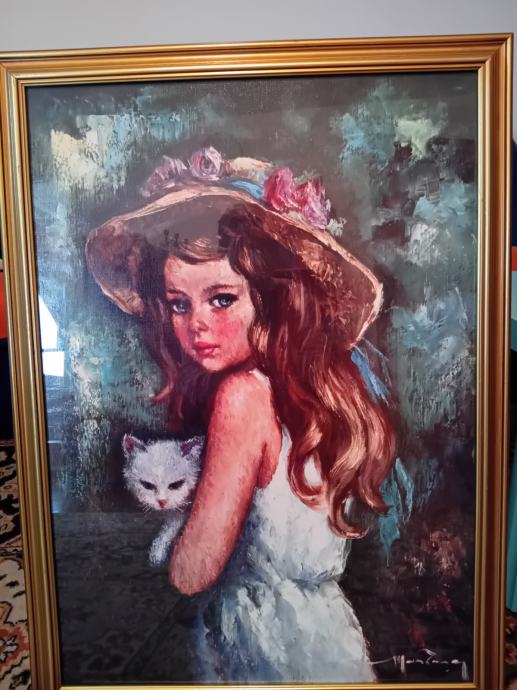 Slika djevojčica sa macom dimenzija 50/70 cm cijena 550eura tel. 091 5111 224