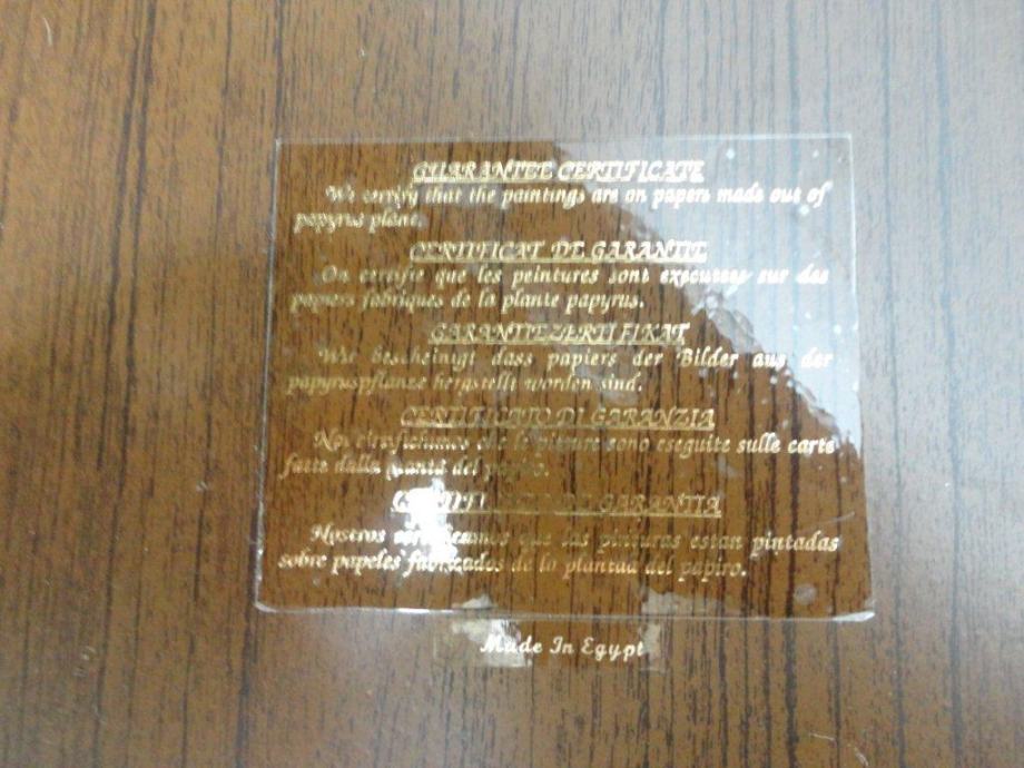 certifikat - garancija da je papir na kojem je slika naslikana od papirusa