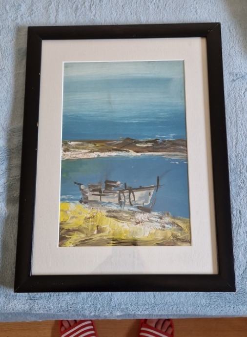 Slika ima ostecenja po okviru i zato je cijena takva. Po dogovoru se moze zamjeniti. Dimenzija 30x40cm