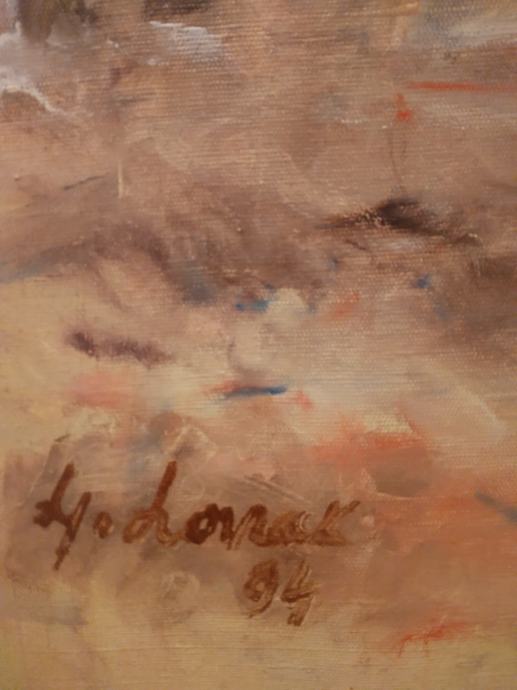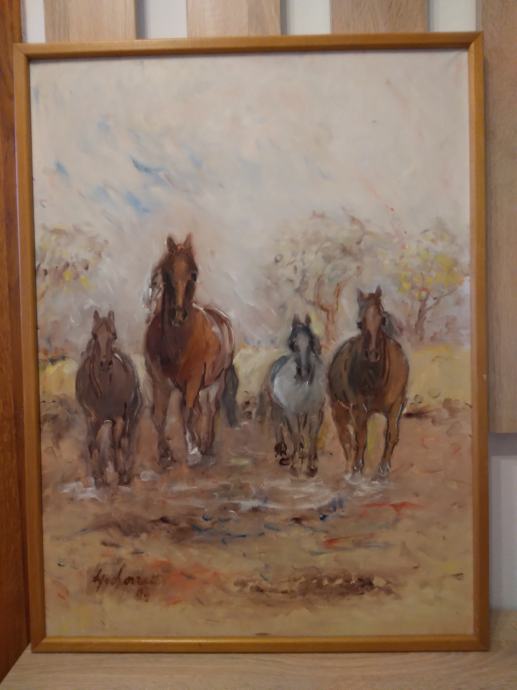 Prodaje se slika konja,ulje na platnu sa potpisom autora.Dimezije slike bez okvira 53.5 x 72,sa okvirom 57 x75.5.