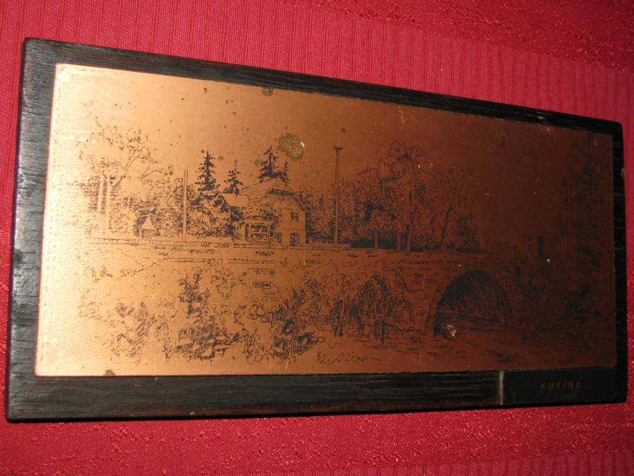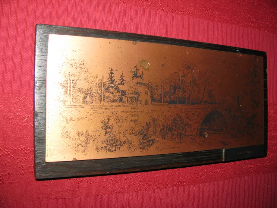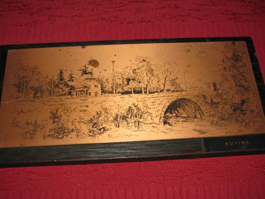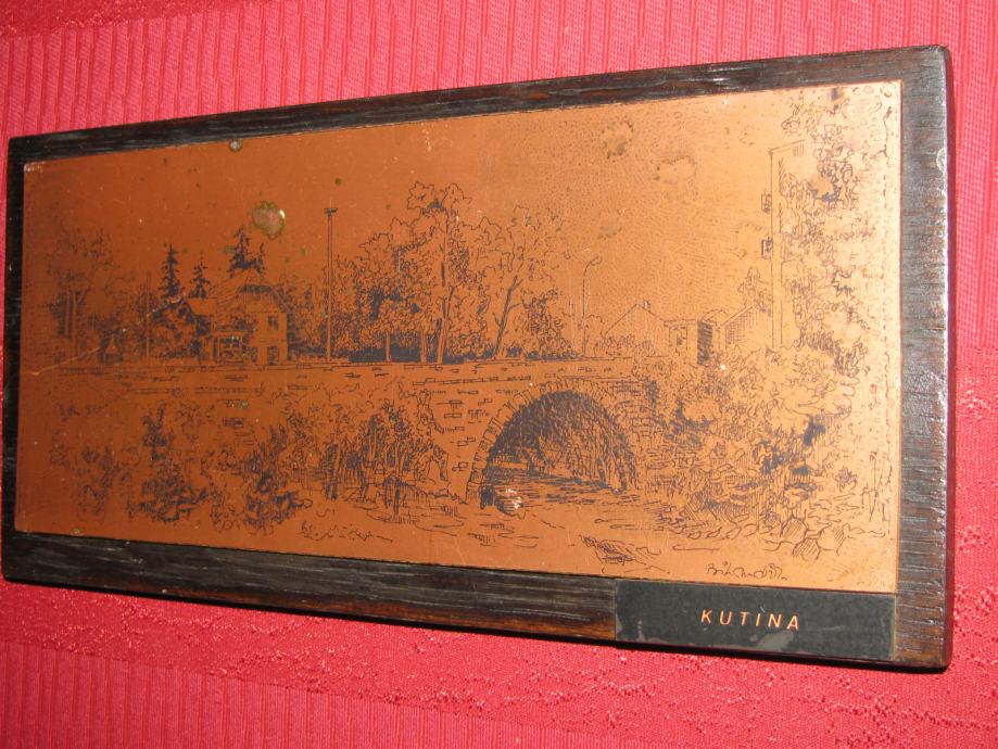 Slika KUTINA, na bakrenoj ili...ploći. Ivica. Ico Bilandžić 25x12 cm.