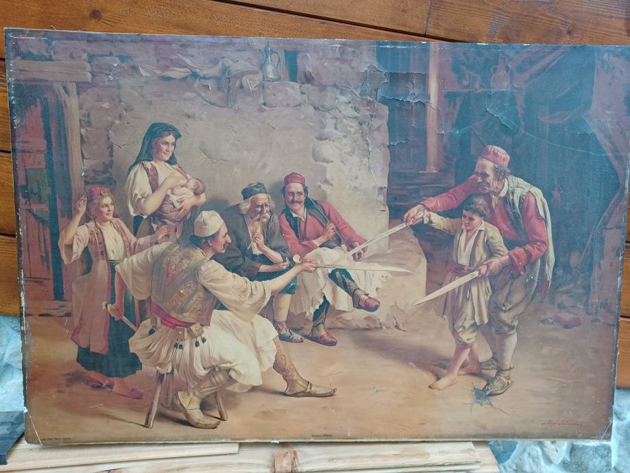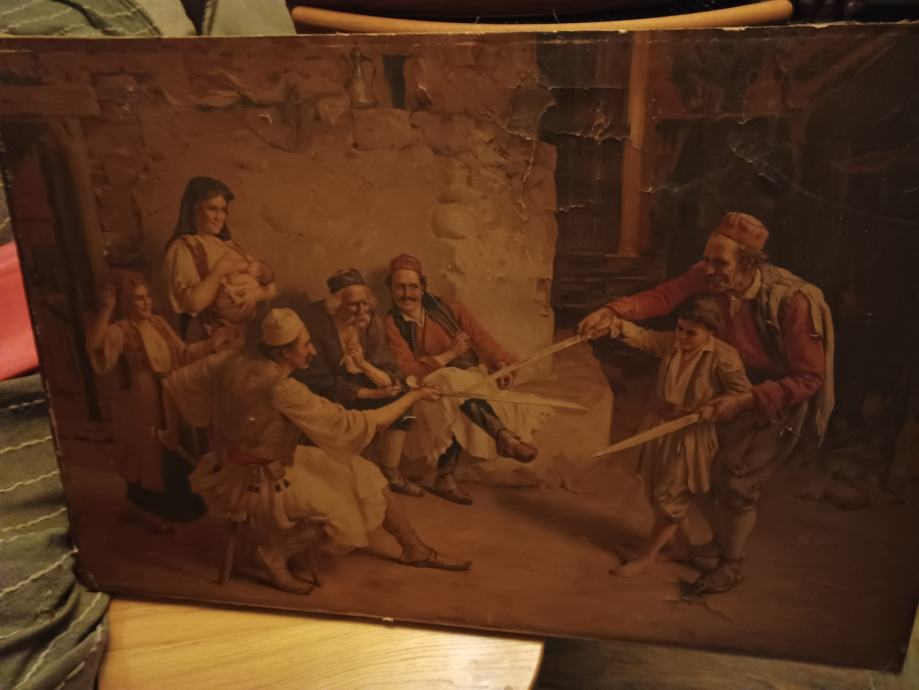 Vrlo staru repliku slike Mačevanje, autor Jovanović, prodajem. Veličina cca 100x80 cm. Bez zamjena. Preuzimanje Trešnjevka, Zagreb.