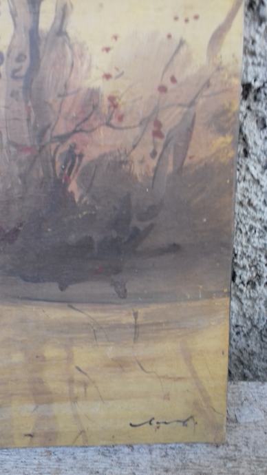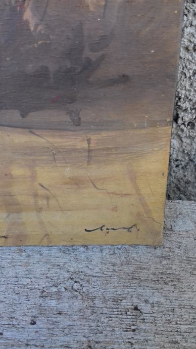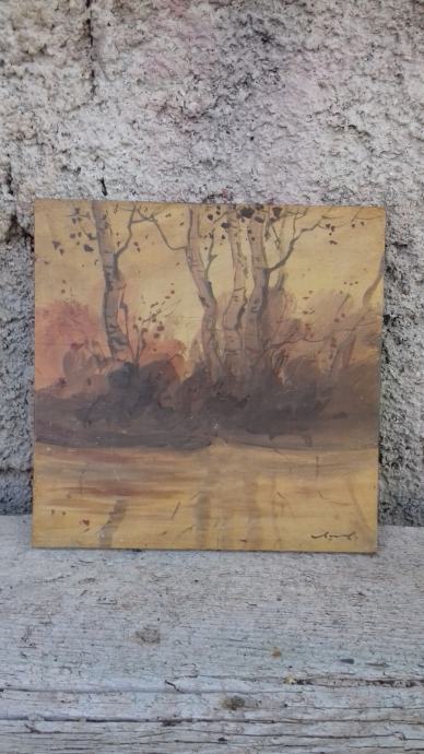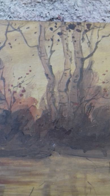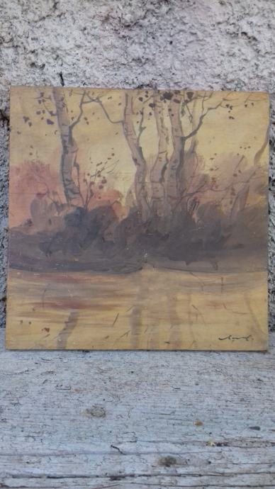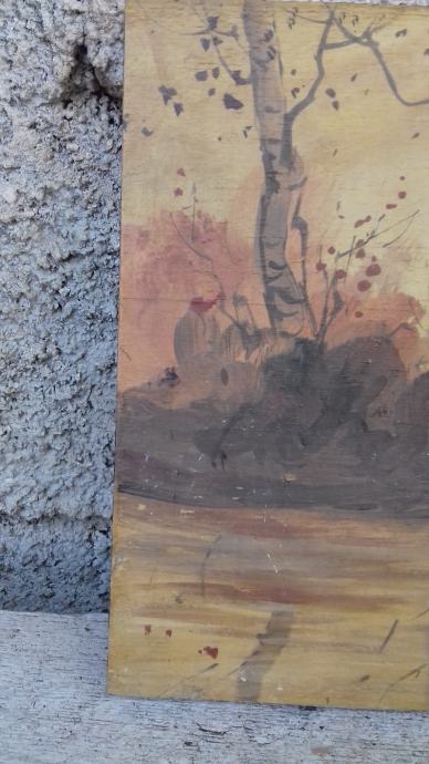 Prodaje se slika sa motivima jeseni moguće uljene boje na drvu. Slika je dimenzija 26 cm x 26 cm. Površinski vidljivi su manji tragovi ljuštenja boje sa drva. Prodavatelju je poznat potpis slikara Duška Mišića koji nije identičan sa potpisom na ovoj slici (moguće raniji način potpisivanja autora ali prodavatelj to ne zna). Na drugoj strani slike odnosno poleđini nalazi se pečat sa natpisom " "84 Duško Mišić Beograd,Yu". Cijena slike je 133 eura. Mogućnost osobnog preuzimanja u Zadru. Kontakt broj mobitela 091 131 10 36.