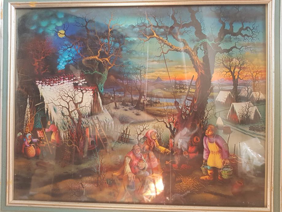 Prodajem sliku/plastificirani poster u okviru, naiva - cca 50x40 cm.
