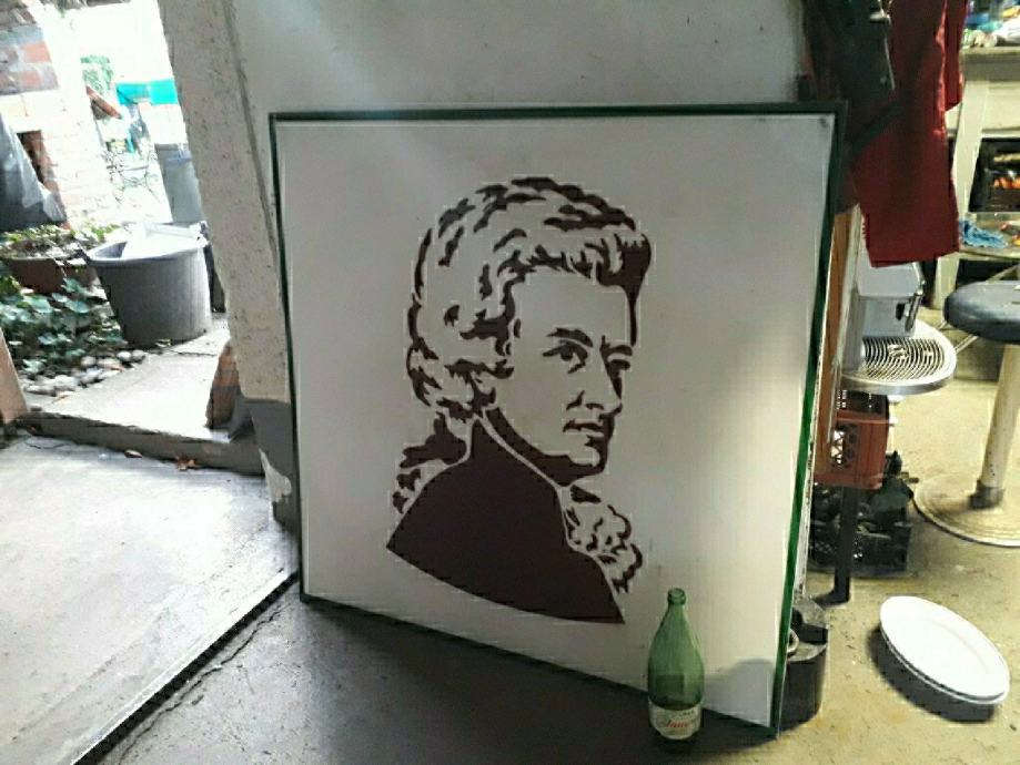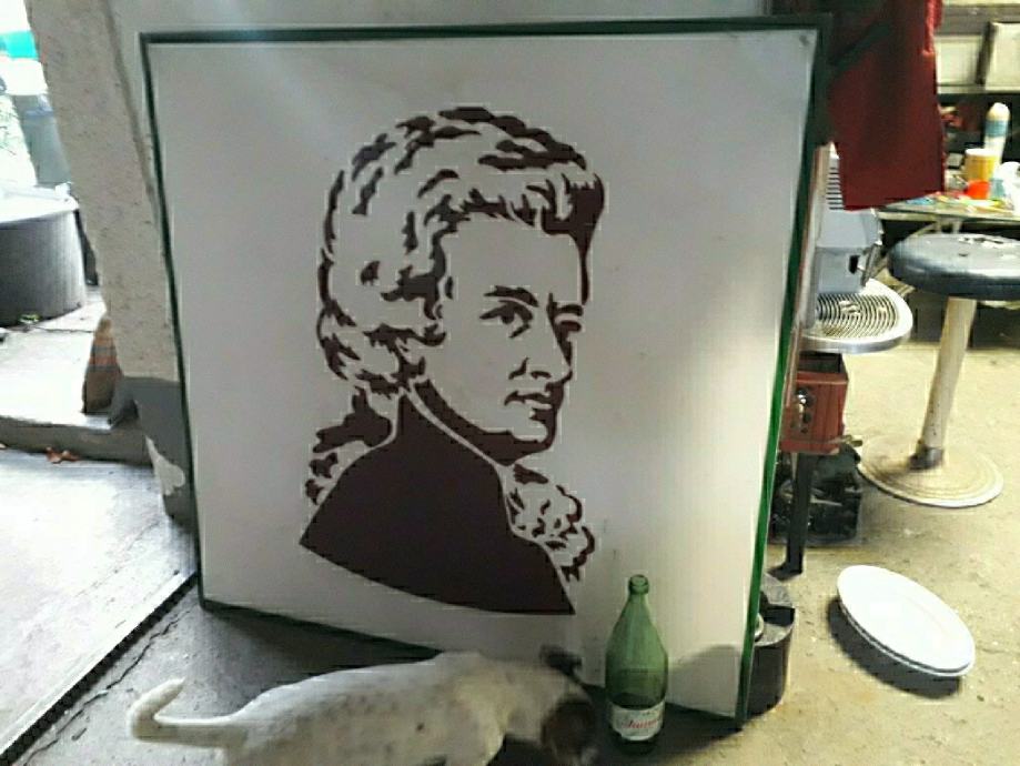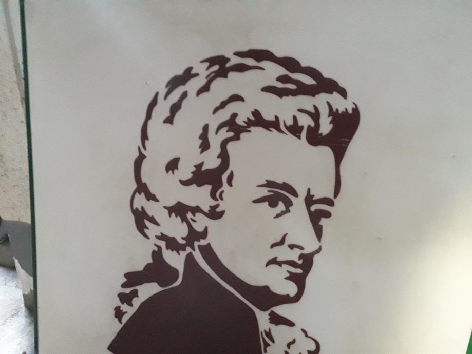 Portret MOCERT , na pleksi staklu 88 cm visina dužina 100 cm