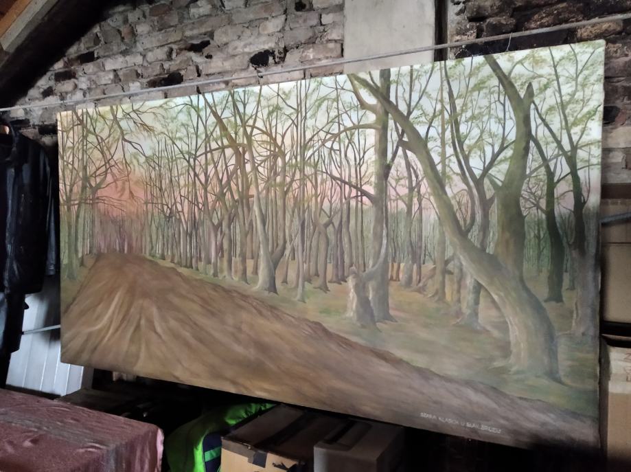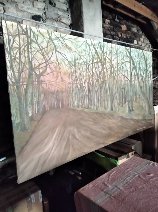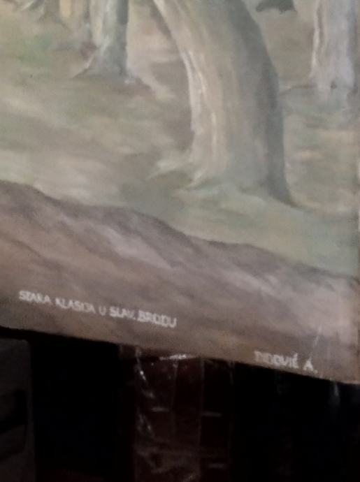 Stara Klasija Slav.Brod (Park šuma) akril na platnu 2,16X1,16 m . Rad Slavonsko- Brodskog slikara DIDOVIĆ A. Slika ima oko 50 god. Moguće ljepša nego na fotografijama. Od više galerista procjenjena na 250€ pa naviše . Prodajem jer nemam gdje staviti tako i galerije . Svima je velika a još plus okvir ( Rama) Potreban pažljiv transport . Može i PONUDE !!!
