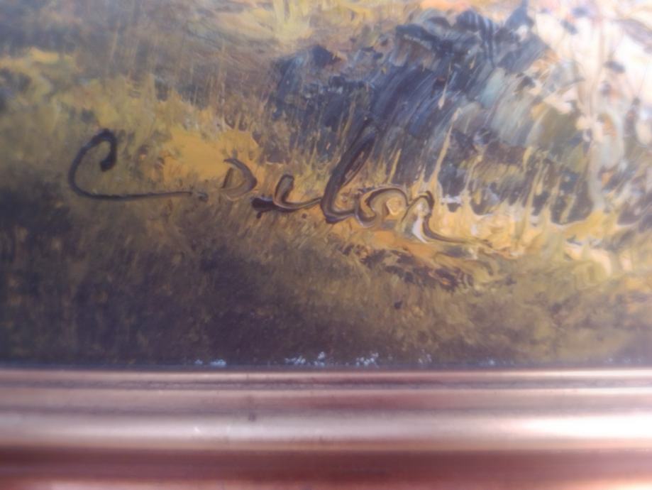 Prodajem sliku,motiv priroda. Slika je ulje na lesonitu. Nastala je negdje između 1930-1950 g,procjena. Ime autora je na jednoj od fotografija. Dimenzije su