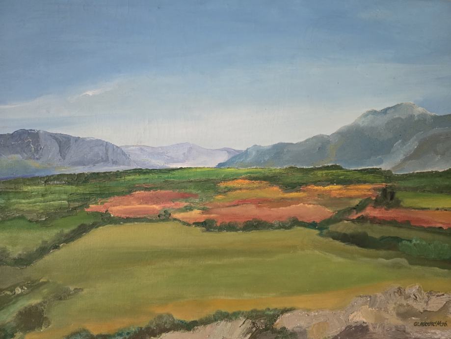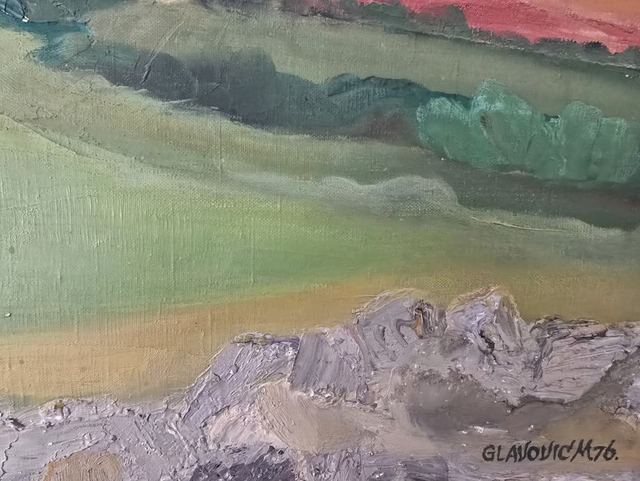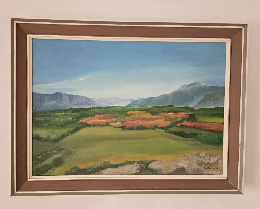 Originalna uljana slika s motivom Popovog Polja. Autor Glavović M, potpisana i datirana 1976. godina.